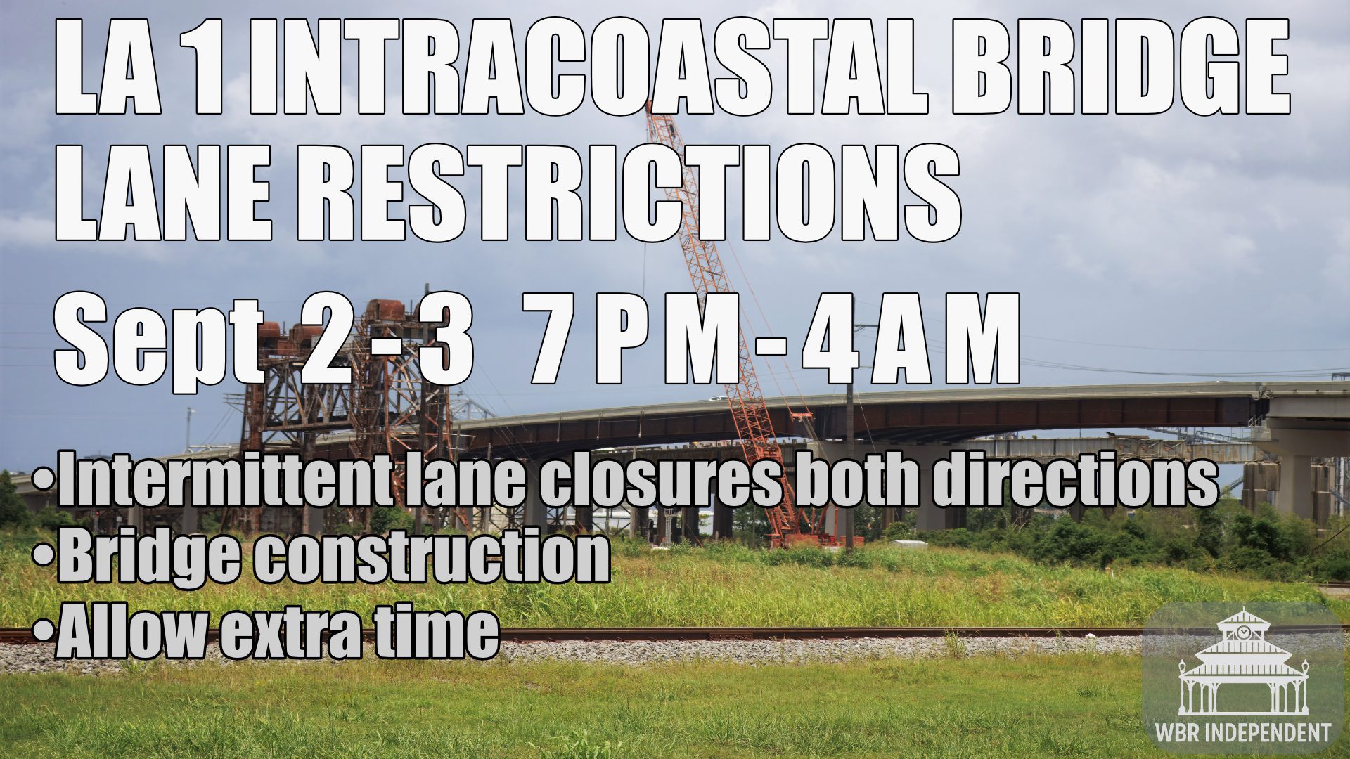 WEST BATON ROUGE PARISH – Motorists should expect intermittent lane closures on LA 1 both northbound and southbound Tuesday and Wednesday nights next week as the Louisiana Department of Transportation and Development prepares for the next traffic switch in the ongoing Intracoastal Bridge replacement project.